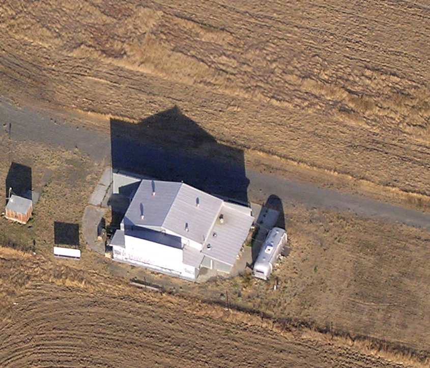 Two small buildings & 3 light aircraft were visible on the southeast side of the field.