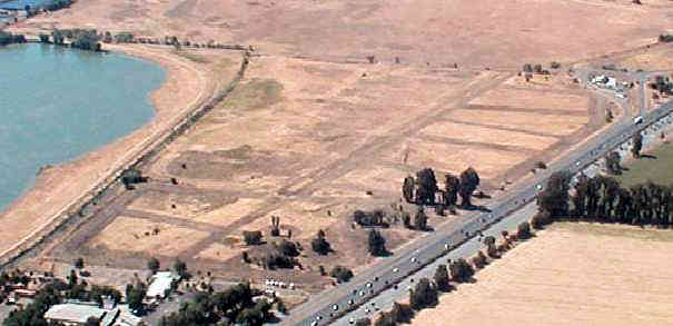 A 1993 USGS aerial view looking north showed the original Rio Vista Airport to be well used, as a total of at over 20 aircraft were visible on the field.