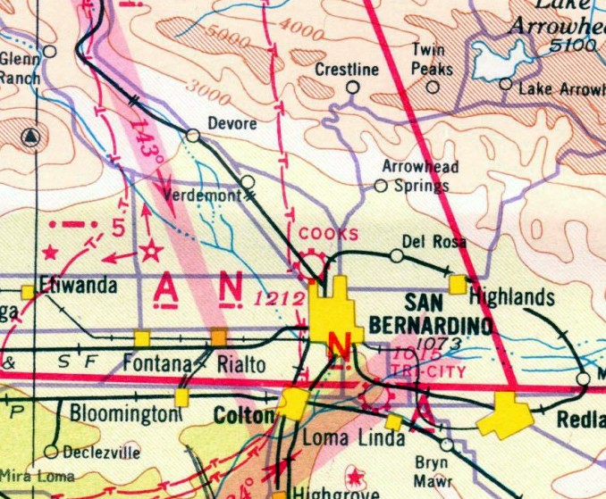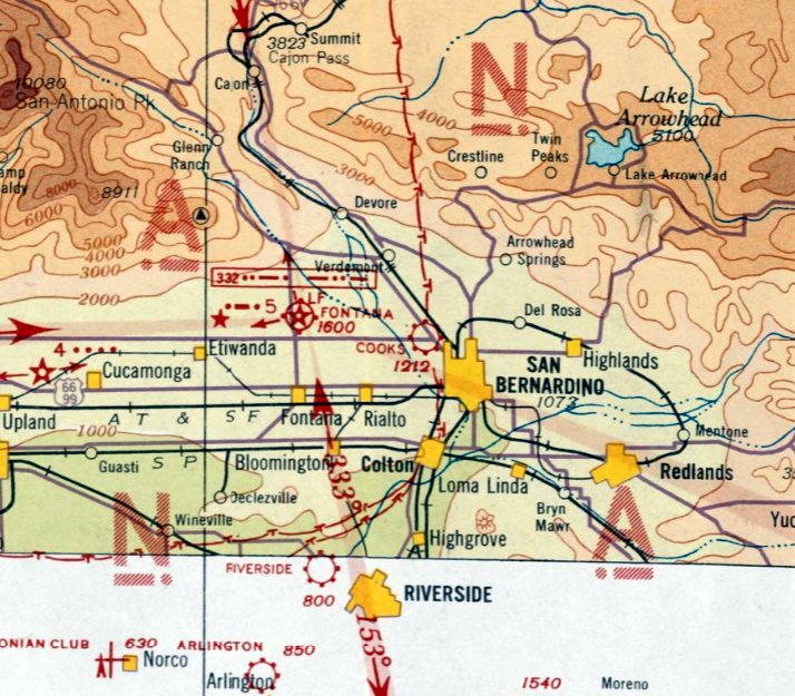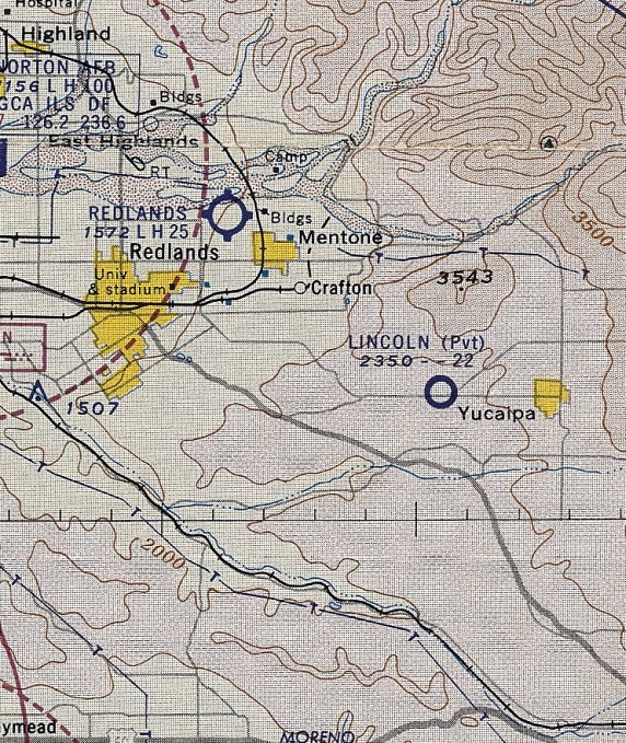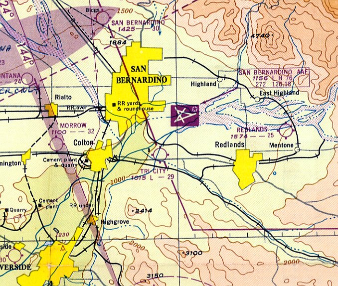 The last aeronautical chart depiction which has been located of Colton-Morrow Airpark was on the January 1976 LA Sectional Chart.