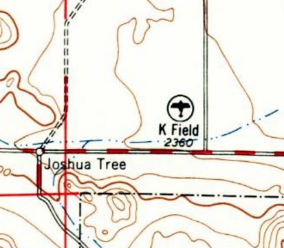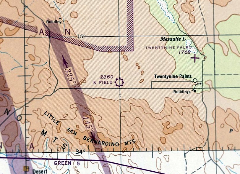 K Field was evidently established during WW2 as one of numerous auxiliary fields which supported flight training operations from the Twenty-Nine Palms Air Academy.