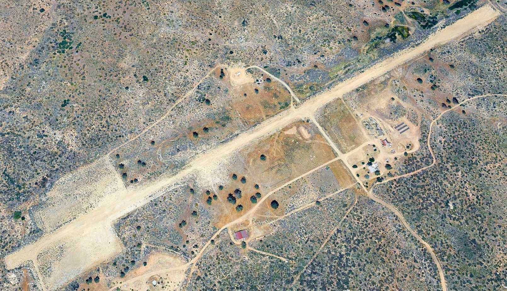 The earliest photo which is available of Squints Ranch Airfield was a 1994 USGS aerial view looking west (enhanced by Bill Grasha).