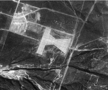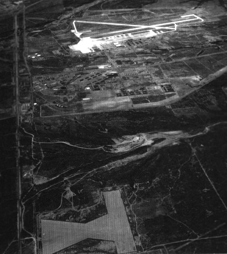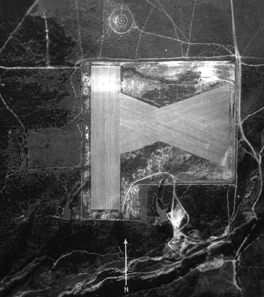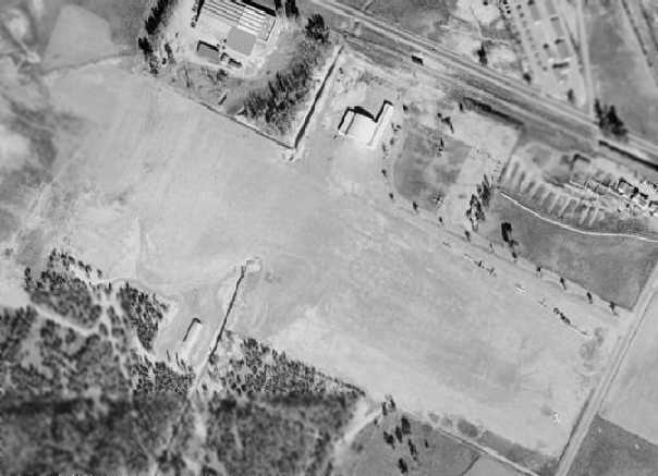 A 1972 aerial photo showed that all of the airfield pavement still remained,