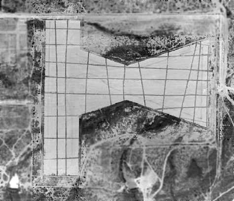 A 1964 aerial view showed that all of the airfield pavement of the former Hourglass Field remained,