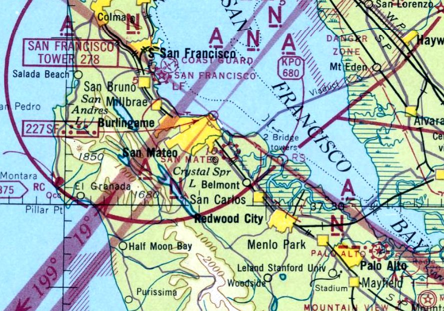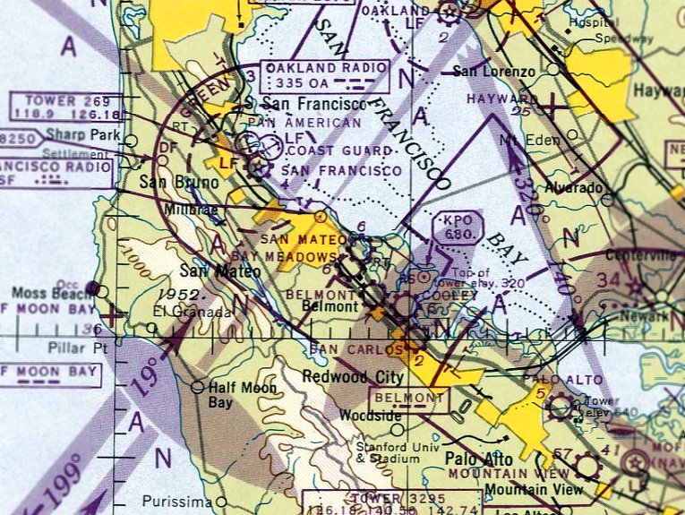 The last aeronautical chart depiction which has been located of San Carlos Airport was on the March 1951 San Francisco Sectional Chart.