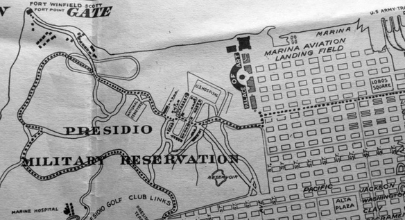 The site of the Marina Airfield is located northwest of the intersection of Mason Street & Lyon Street.