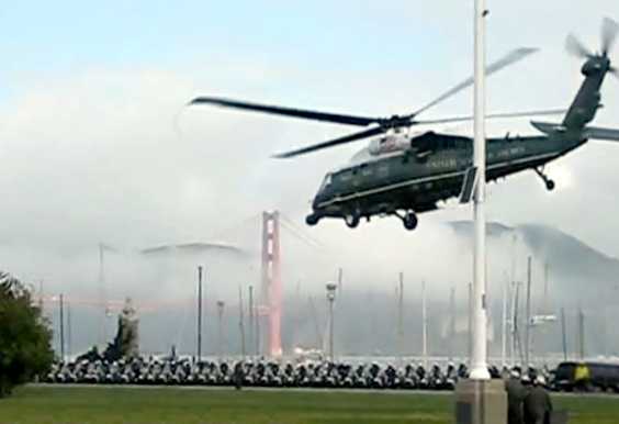 A May 2010 video capture (courtesy of Jonathan Westerling) of Marine One VH-60N taking off from Marina Green with President Obama.