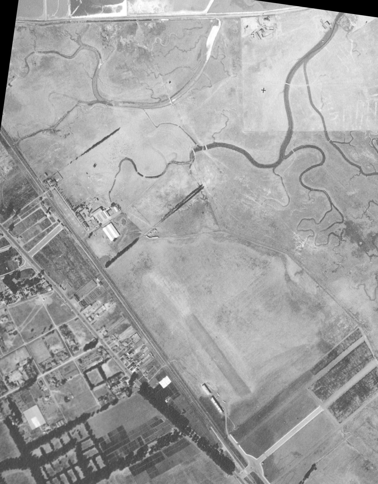 The earliest photo which has been located of San Mateo Airport was on a 1946 aerial photo (from the UCSB Library, courtesy of Jonathan Westerling).