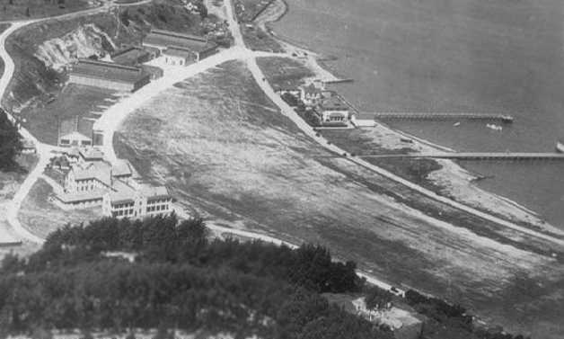 A colorized 1915 aerial view looking southeast at the western portion of the Marina Airfield (courtesy of Kevin Walsh).
