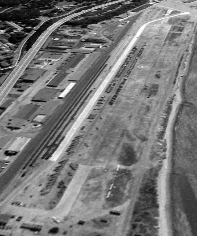 In these early years the main runway running parallel to the Bayshore Highway was paved with crushed redrock