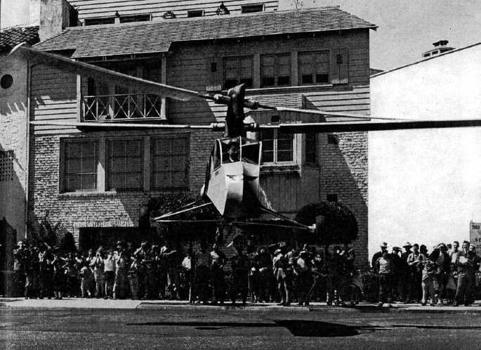 A 8/30/44 photo of Stan Hiller's demonstration flight of the Hiller XH-44 co-axial helicopter on Marina Green