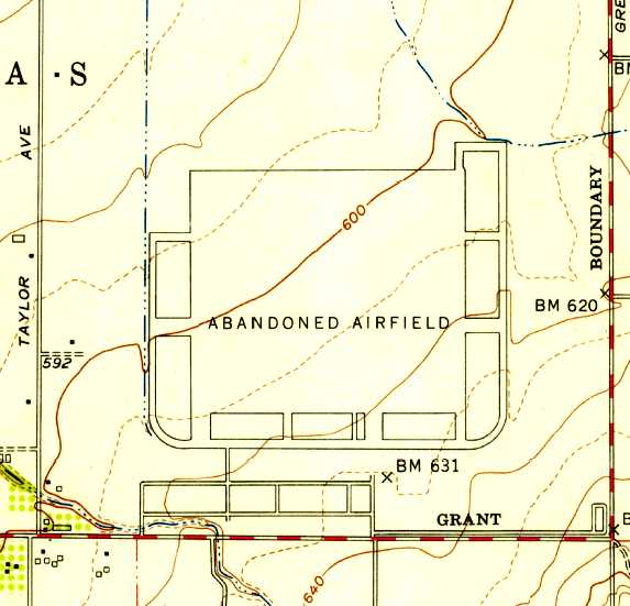 No airfield at this location was depicted on the March 1945 San Francisco Sectional Chart nor on the 1947 USGS topo map.