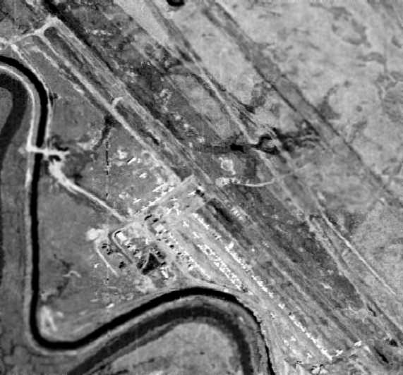 A new road had been built over the southwest portion of the site, but the outline of the 2 former runway was still barely recognizable.