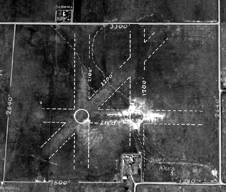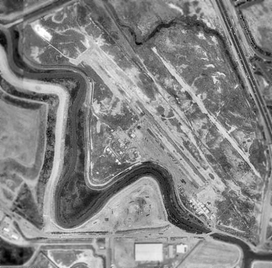 It consisted of a gravel & grass 2,500' East/West runway, along with 2 hangars.