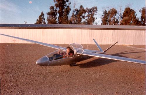 A 1980s photo by Richard Gaines (via Jonathan Westerling) of Dr. Gains' beautiful HP-14 sailplane on the ramp at Hummingbird.