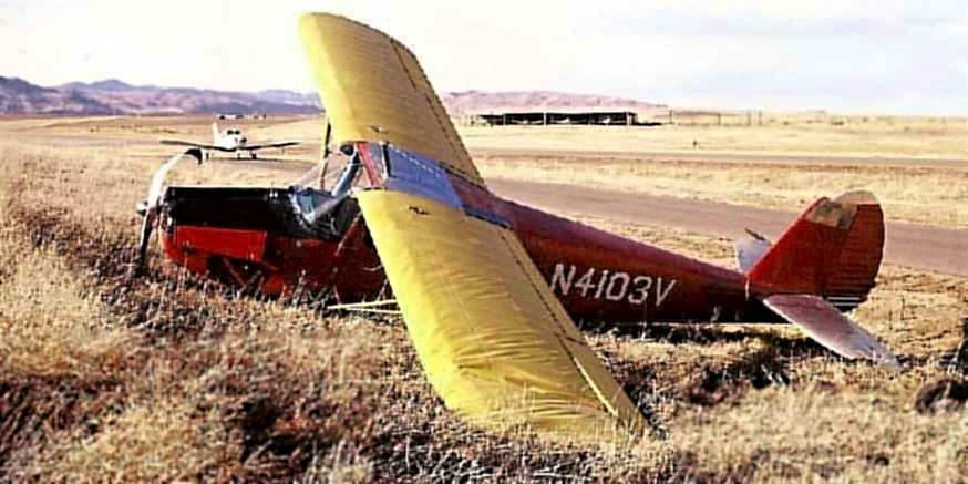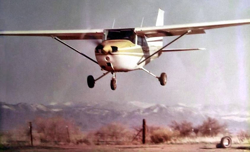 A February 1967 photo by Mike Wotovitch (enhanced by Bill Grasha) of Cessna which suffered an accident at Columbine Airport.