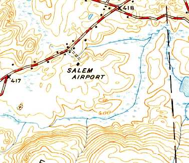 The last topo map depiction which has been located of Salem Airport was on the 1950 USGS topo map.