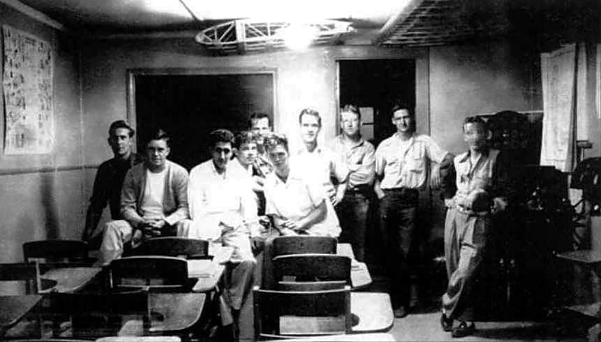 An undated photo of students inside Gannoe Flying Service's classroom at Salem Airport.