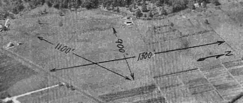 as a 30 acre L-shaped property having 2 sod runways, measuring 1,250' north/south & 1,150' northwest/southeast.