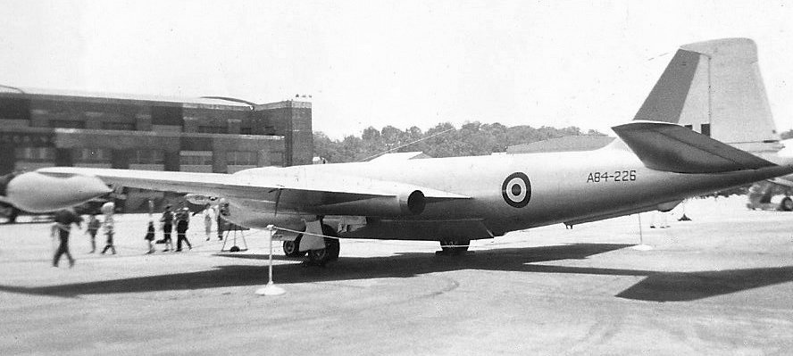 A 5/19/56 photo of English Electra Canberra bomber A84-226 at the Bolling AFB Airshow.