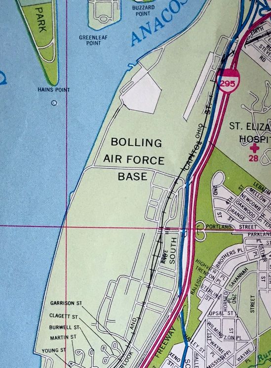 The hangars of Bolling Field were along the east side (at top-right).