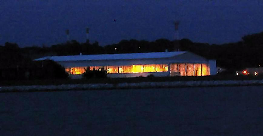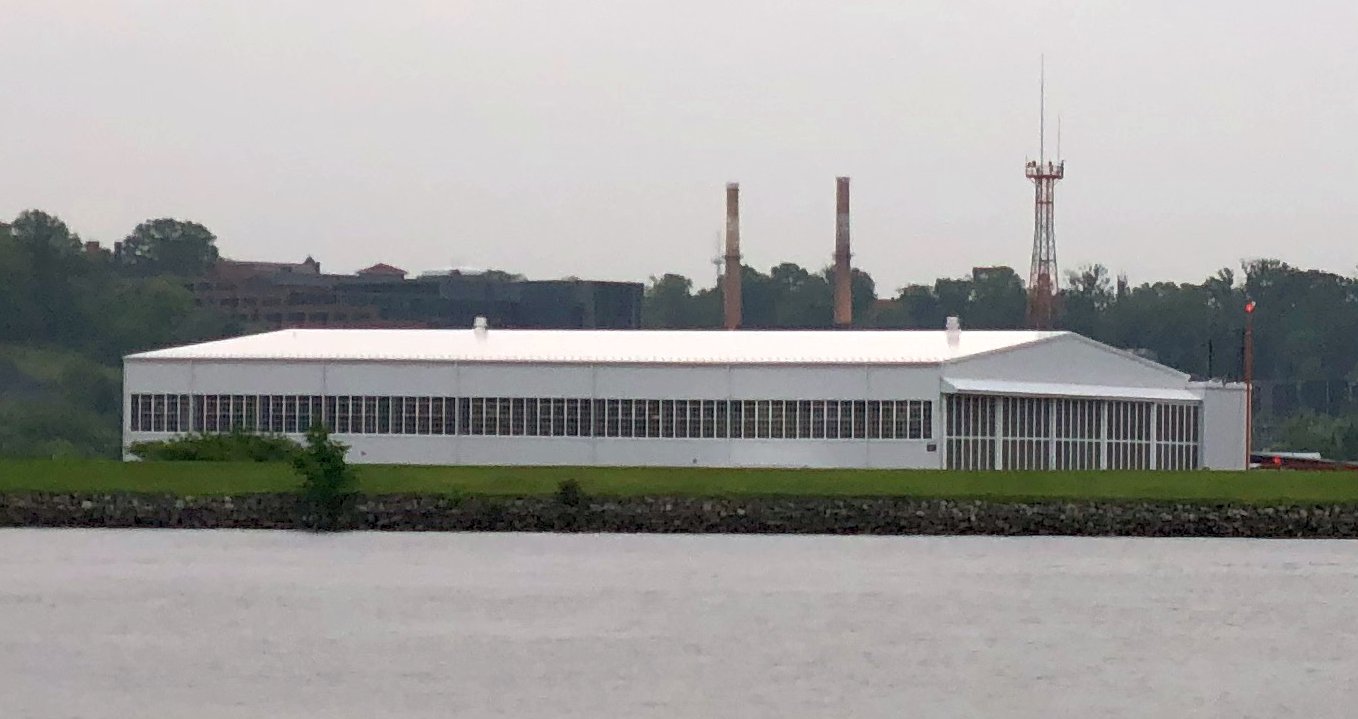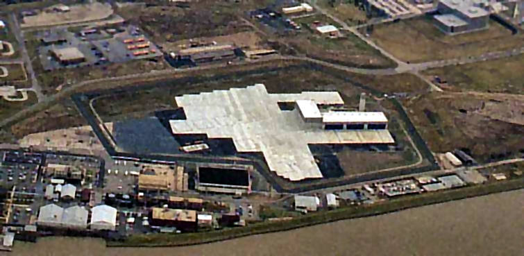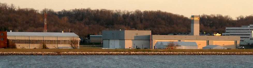 The photo was taken looking south. The steam generator at the right is in the aircraft wash rack area.