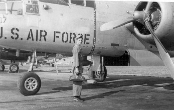 A July 1957 photo of Paul LaPenta & a North American B-25 Mitchell bomber at Bolling AFB.