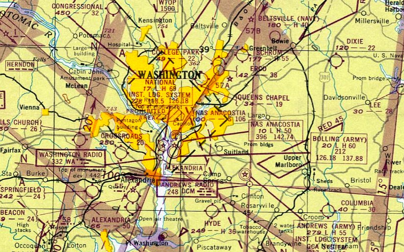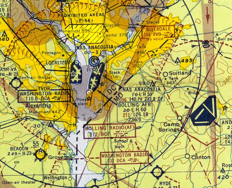 Bolling Field (bottom-left), NAS Anacostia (bottom-right), and Washington National Airport (top-right).