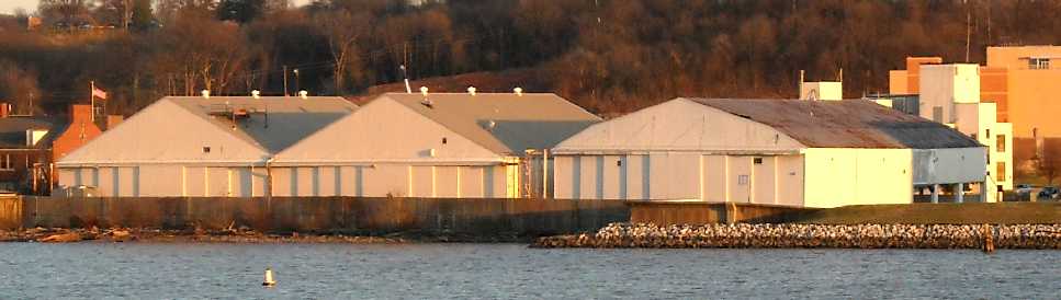 A 1919 aerial view (courtesy of the Library of Congress) looking east at the seaplane hangars along the west side of Naval Air Station Anacostia.