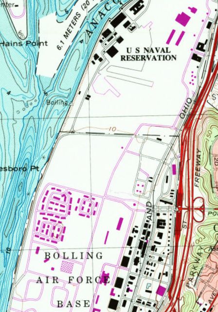 Although no trace of the runways at Bolling AFB are still visible,