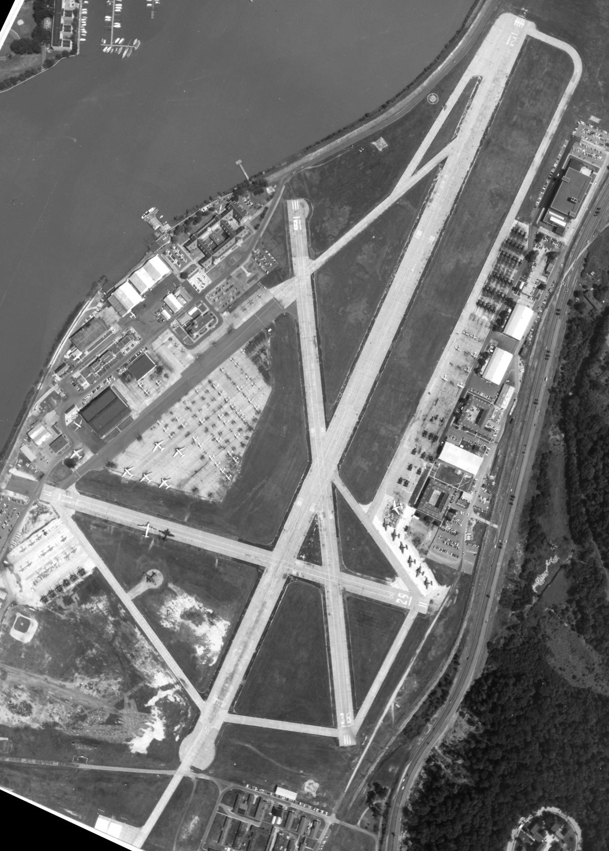 The Bolling runways had been covered by buildings at some point between 1964-79, as depicted by a 1979 aerial photo.