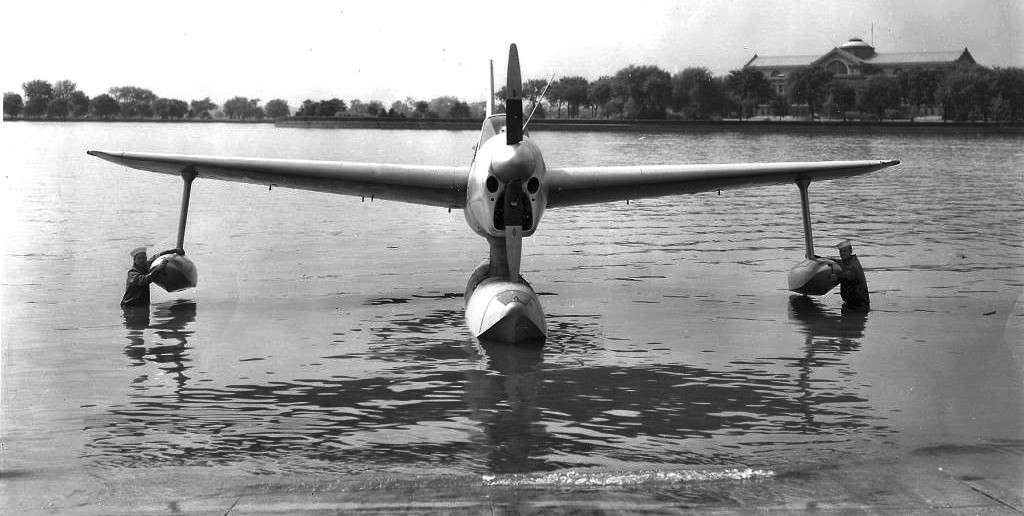 A 6/6/41 photo of a rare Navy Curtiss XSO3C-1 prototype, BuNo 1385, being brought back onto land at NAS Anacostia.