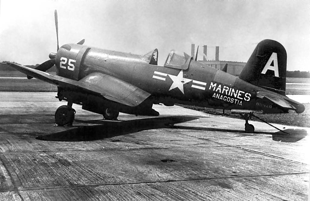 A late 1954 – early 1955 photo of a Marine Corps Reserve Vought F4U-4 Corsair (BuNo 80948) of VMF-321 at NAS Anacostia.