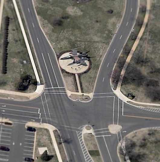 A circa 2005 aerial view looking west at a Republic F-105 Thunderchief,