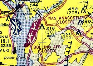 The last aeronautical chart depiction which has been located showing Bolling AFB still open was on the July 1960 Washington Sectional Chart.