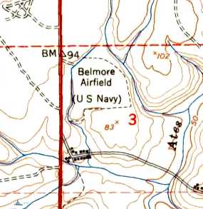 The 1949 USGS topo map still depicted “Belmore Airfield (U.S. Navy)”, but the field was evidently closed by this point.