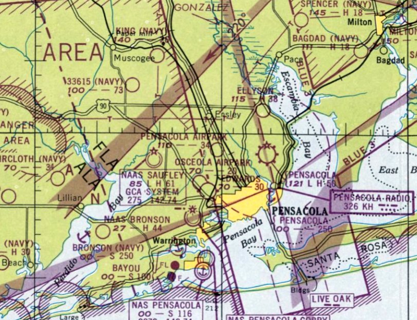 The last aeronautical chart depiction which has been located of Pensacola Airpark was on the February 1949 Mobile Sectional Chart.