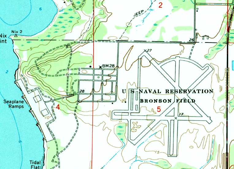 The 1987 USGS topo map still depicted the "U.S Naval Reservation Bronson Field" as having 4 paved runways,