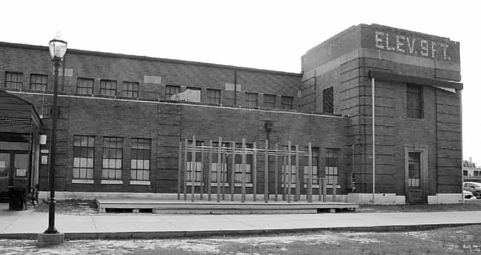 A January 2006 photo by Paul Freeman looking south at a building on the western edge of the Bronson Field ramp, presumably a former airfield fire station.