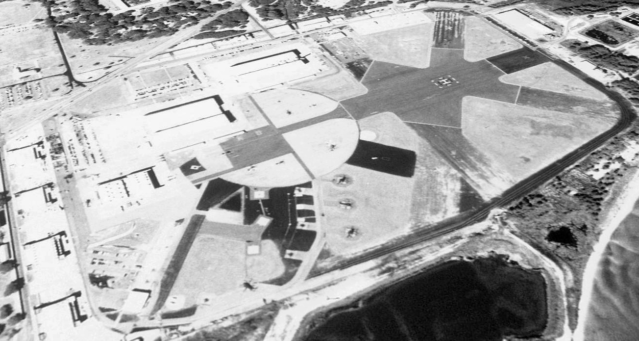 A circa 2006-2007 aerial photo looking north shows that the runway intersection