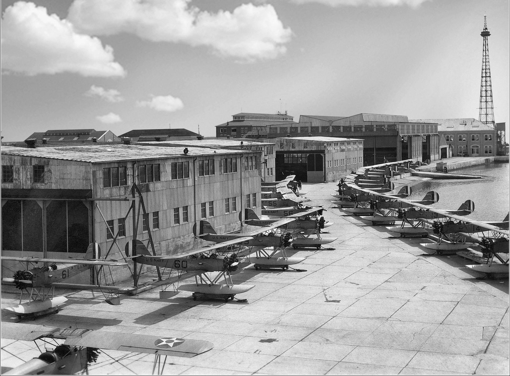"Several building have been torn down...although all 4 hangars were still standing [including the 2 hangars on the seaplane ramp].