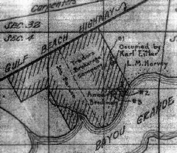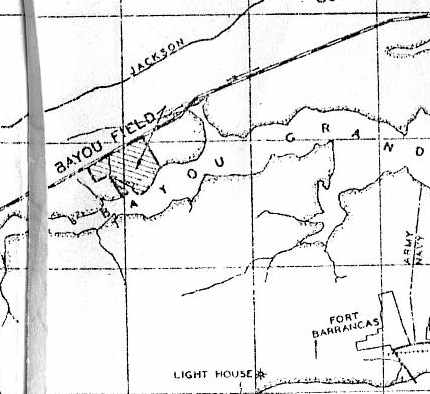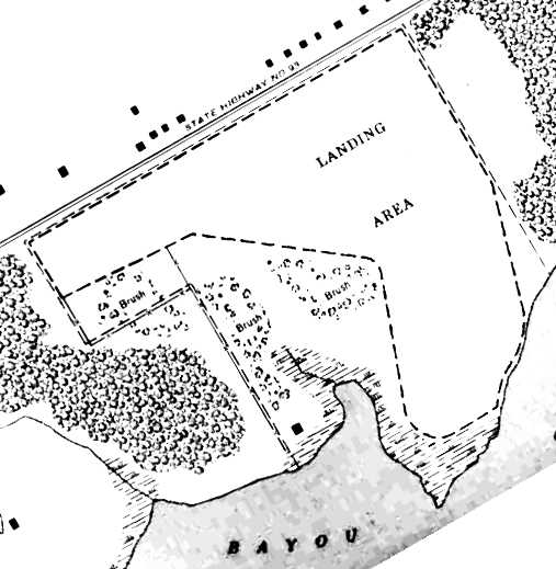 The 1944 USGS topo map depicted the property outline of Bayou Field, but did not label the airfield.