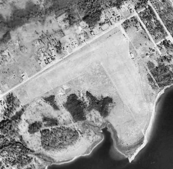 Note the square clearing just northeast of the airfield, cleared as an ad-hoc airfield by salvage dealers to fly out large numbers of surplus SNJs.