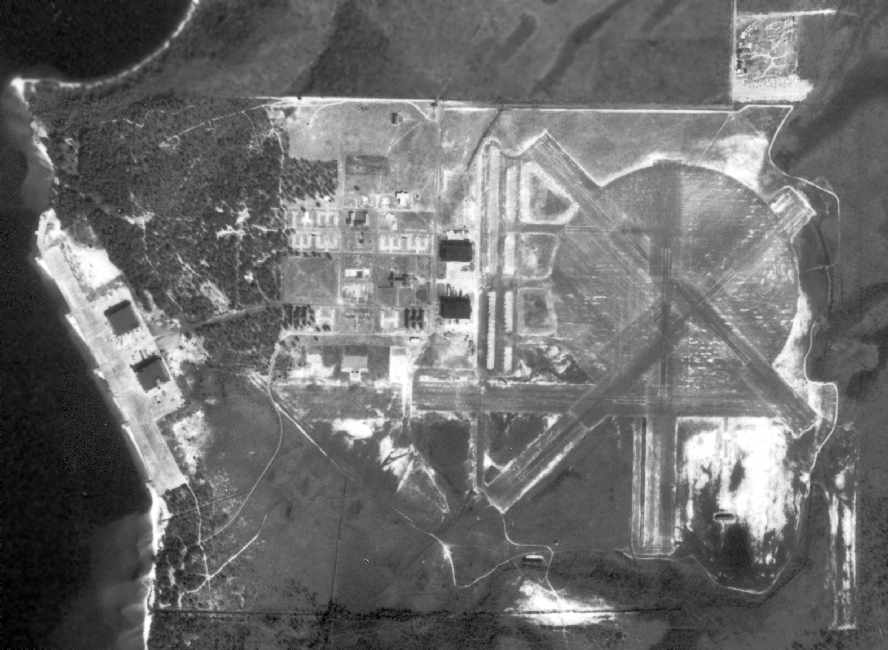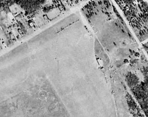 The large airfield circle marking was still prominent, and 3 shacks or small hangars were visible on the southeast side.