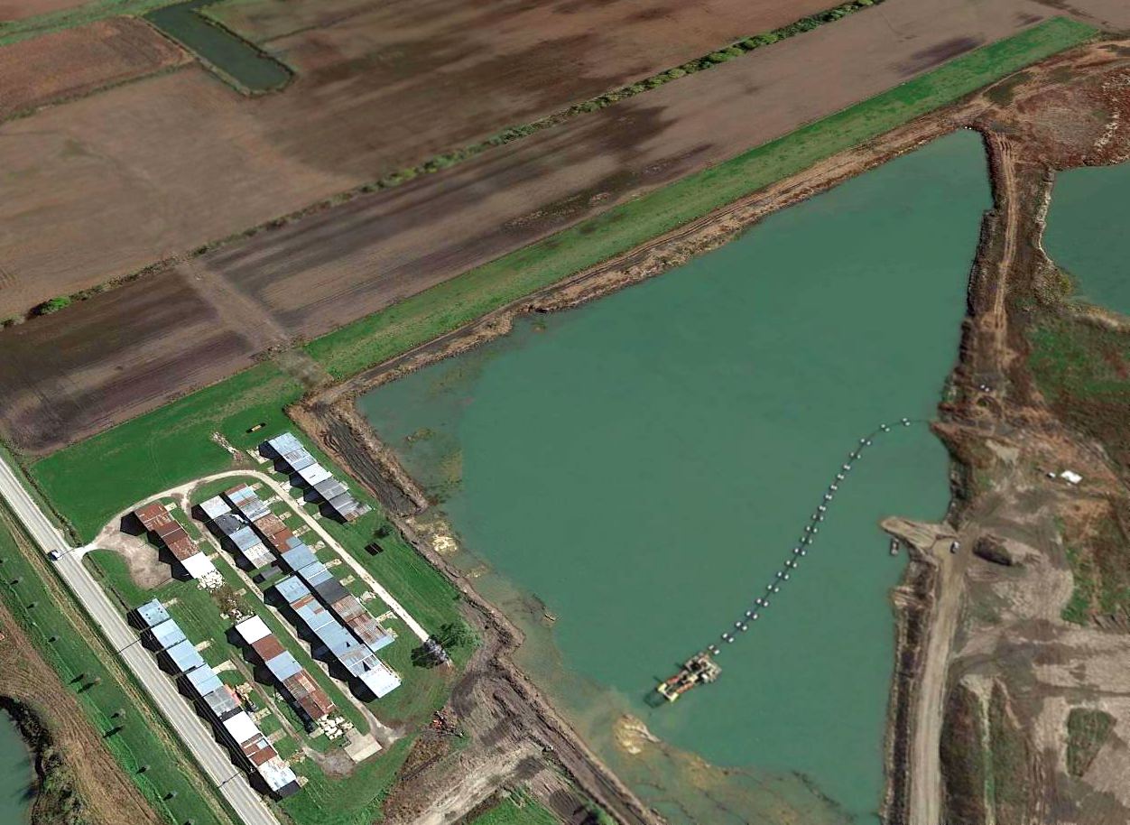 A 2015 aerial view looking east shows the Deere Landing Strip remained intact.