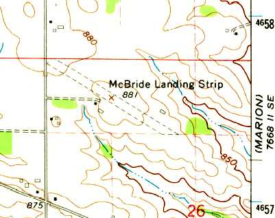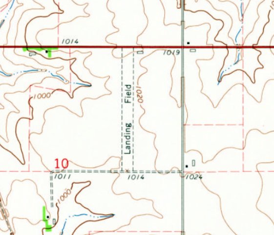 Nick Williams reported, “K Field was used by private pilots for decades, at least until the mid-1980s when the grass strip was planted in corn & soybeans.”
