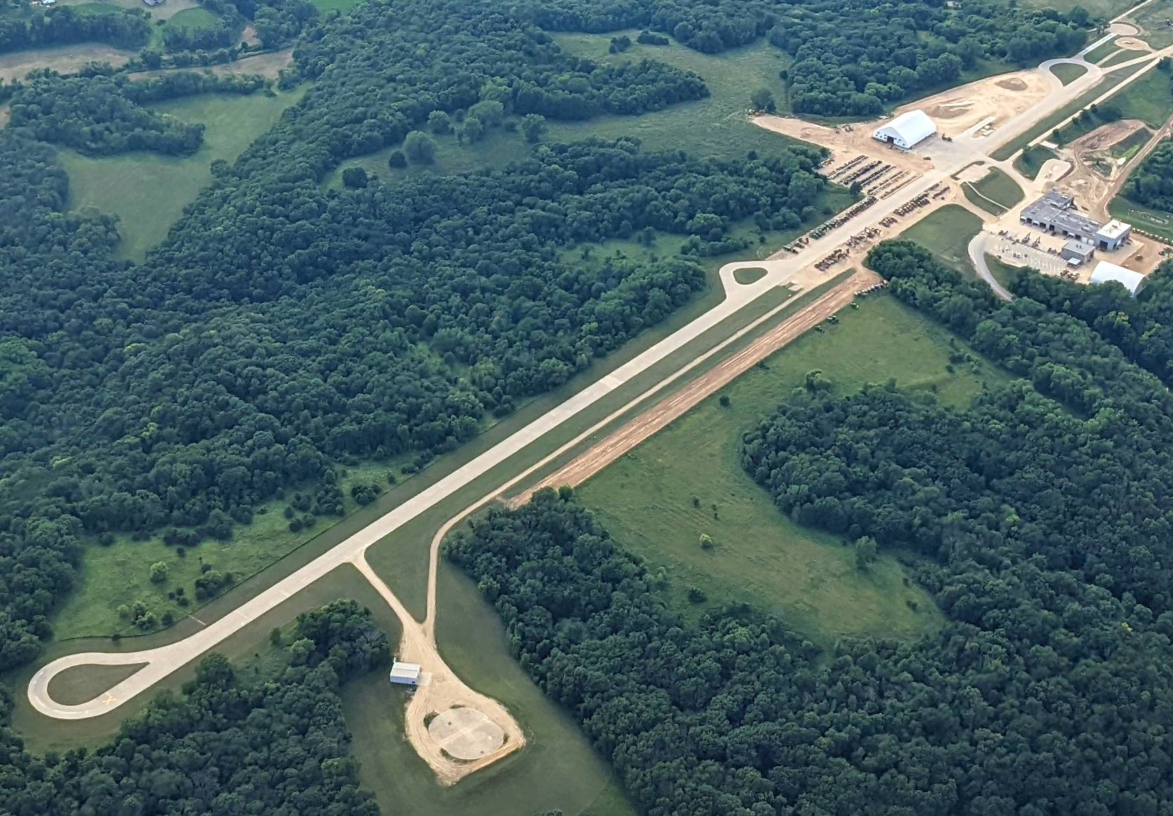 A 7/14/22 aerial view by Nick Paxton looking northwest at Deere Landing Strip.