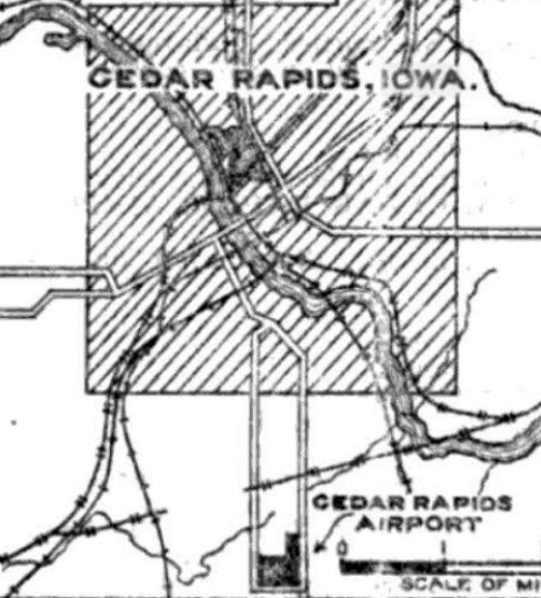 The last depiction which has been located of the original Cedar Cedar Rapids Municipal Airport