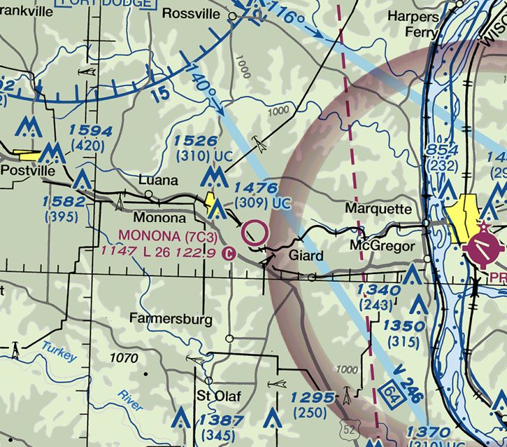 Monona Airport was not yet depicted on the 1970 Dubuque Sectional Chart.