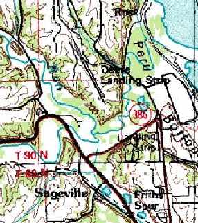 It depicted De Witt as having 2 perpendicular unpaved runways, with a small building on the northwest side.