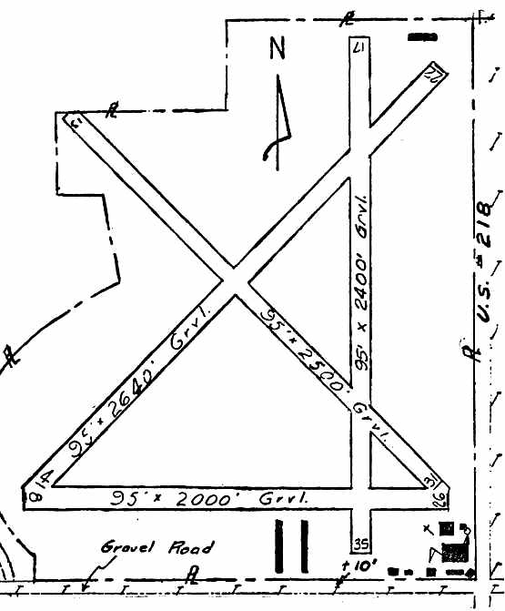 The 1948 Iowa Airport Directory (courtesy of Chris Kennedy) depicted Hunter Field as having 4 gravel & turf runways,